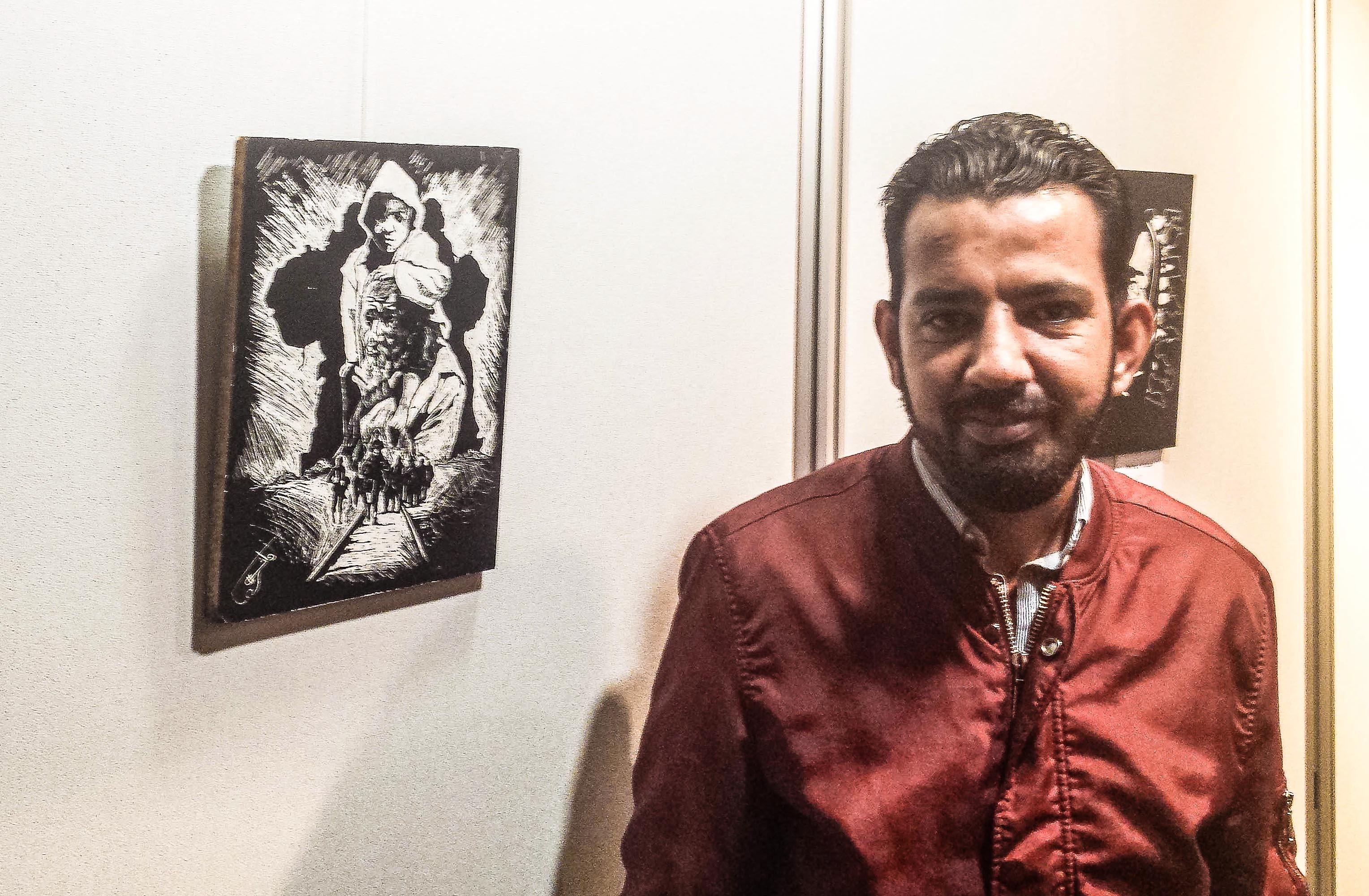 Mit zwei Bildern an dieser Ausstellung beteiligt ist auch Watheq, der sich durch seine hervorragenden Arbeiten bereits einen Namen in der Gifhorner Kunstszene gemacht hat. Beide Bilder hat er in der filigranen Ritztechnik geschaffen, die er so meisterhaft beherrscht.