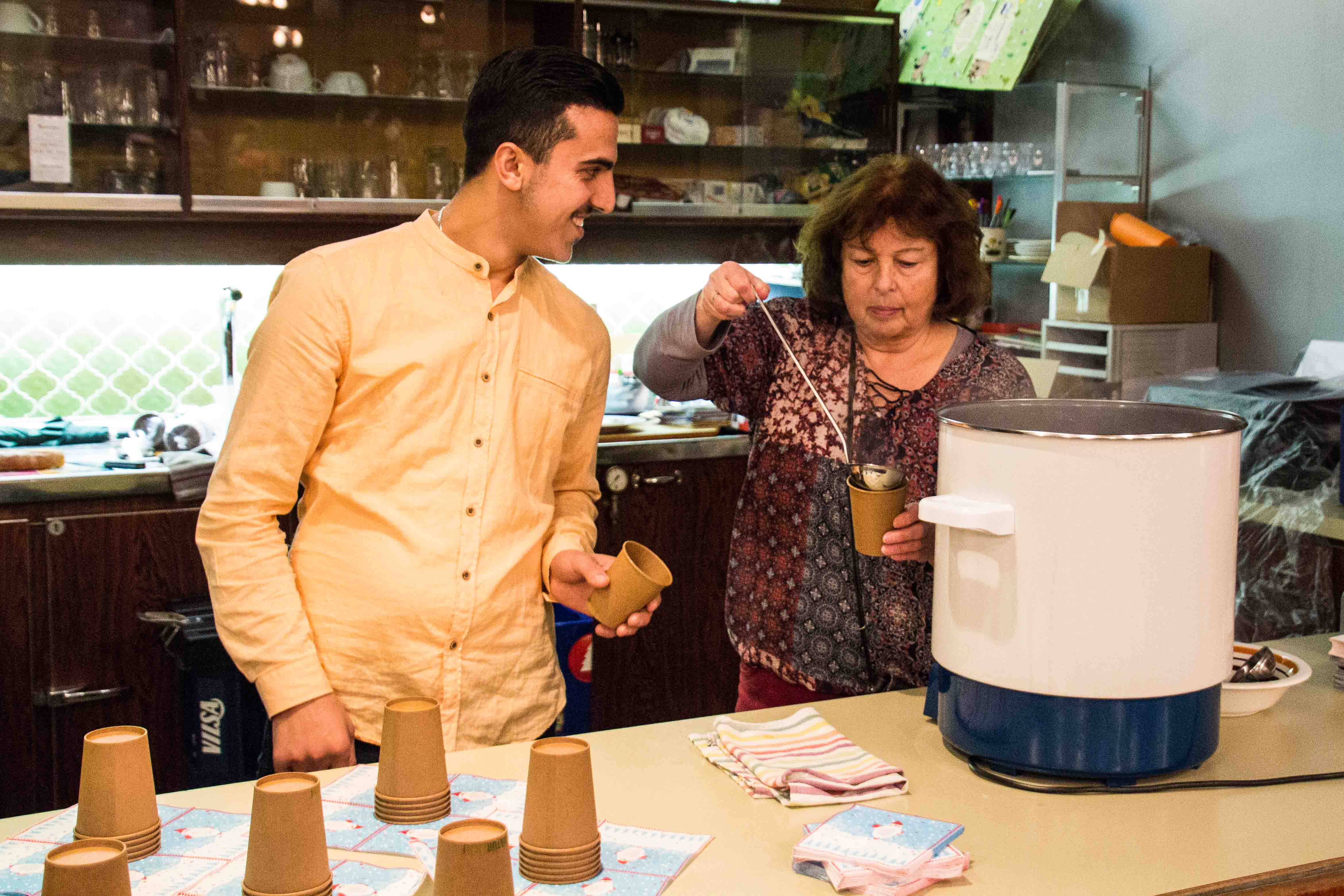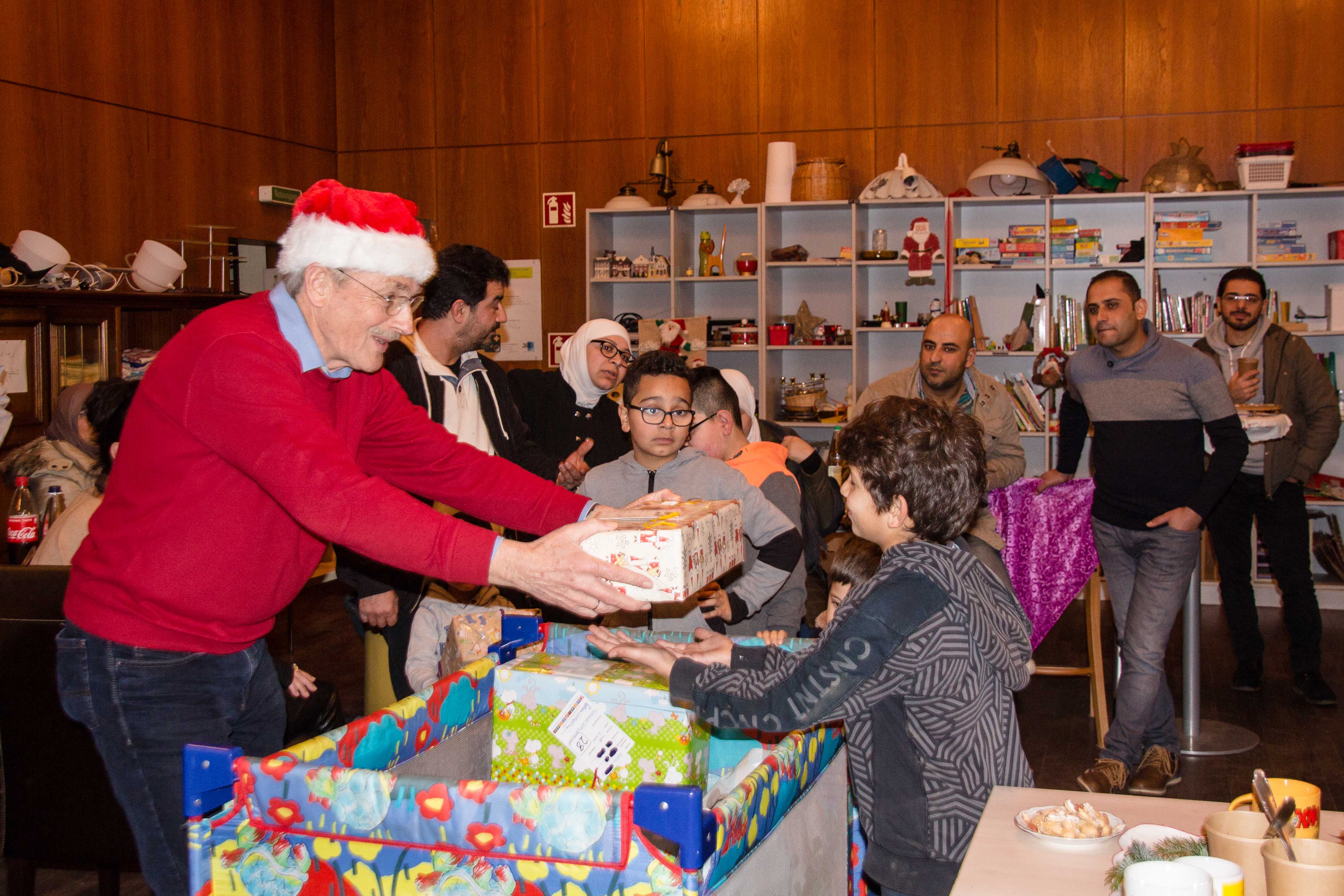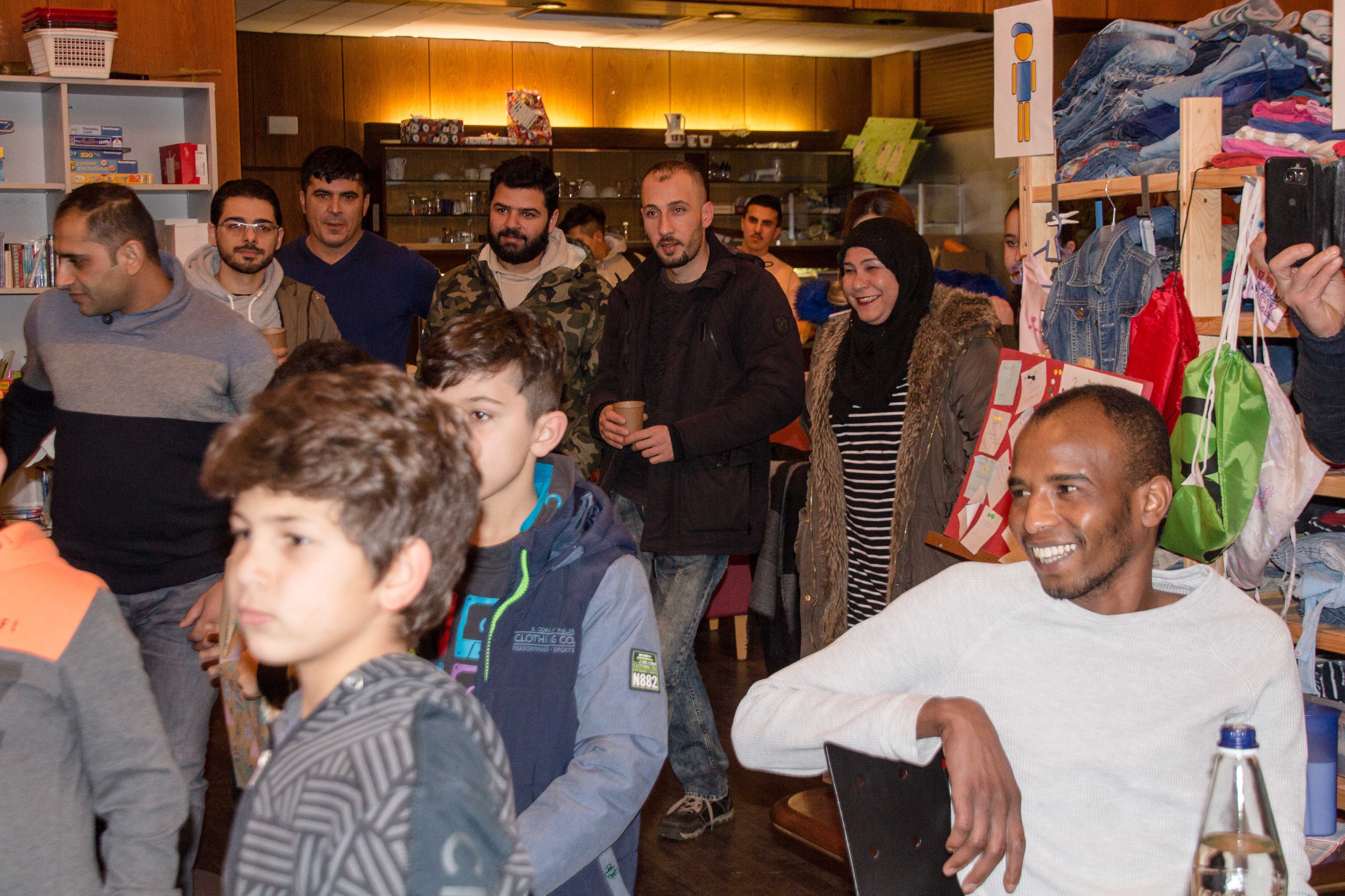 Für die letzten Tage des alten Jahres ist das Magazin nun geschlossen, doch am Mittwoch, dem 19.12.2018 war noch einmal Hochbetrieb. Rund 60 Geflüchtete und Flüchtlingshelfer waren der Einladung zur Weihnachtsfeier gefolgt, auch die Männer aus der Fahrrad-Werkstatt konnten jetzt mal ohne ölverschmierte Finger im großen Saal dabei sein.