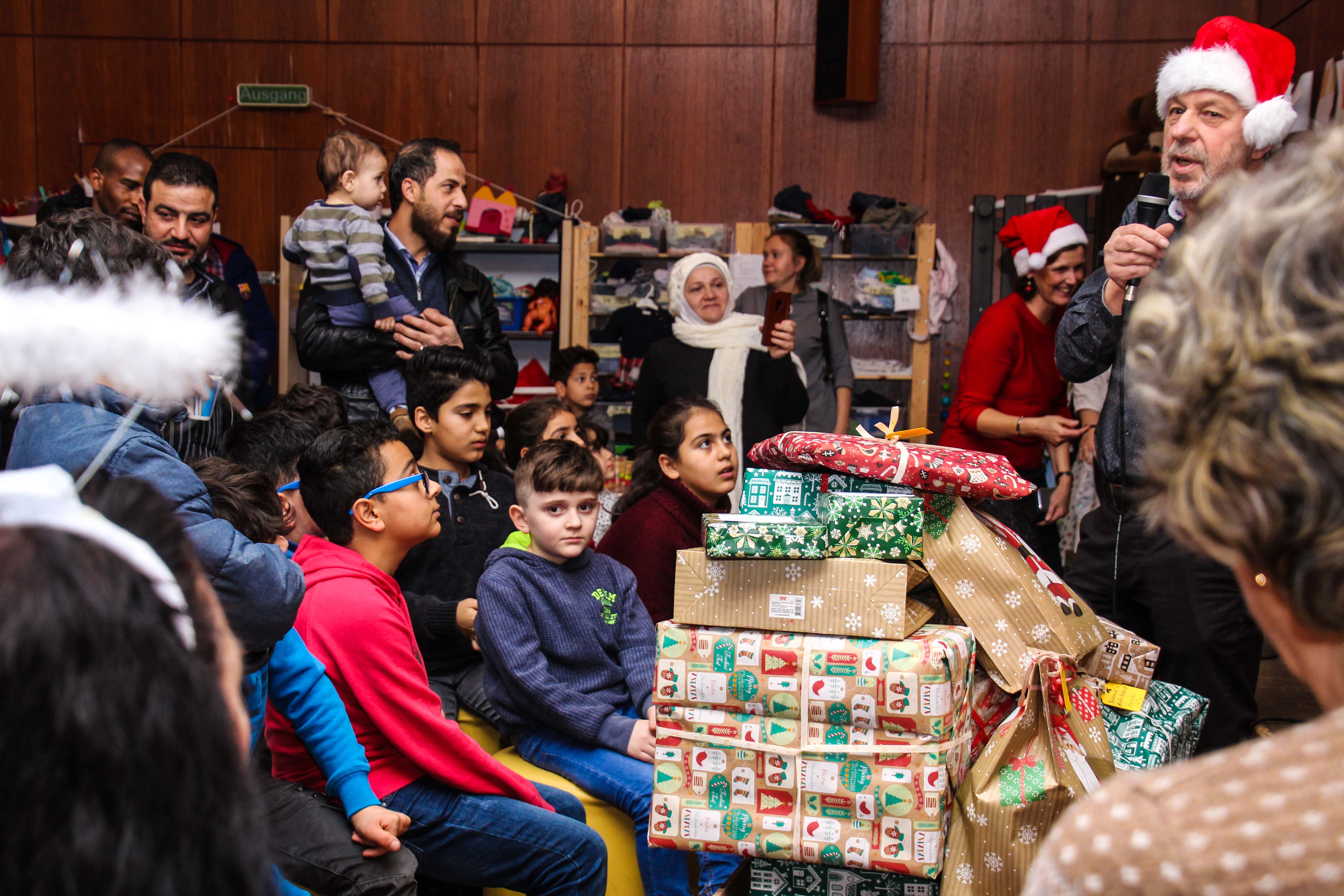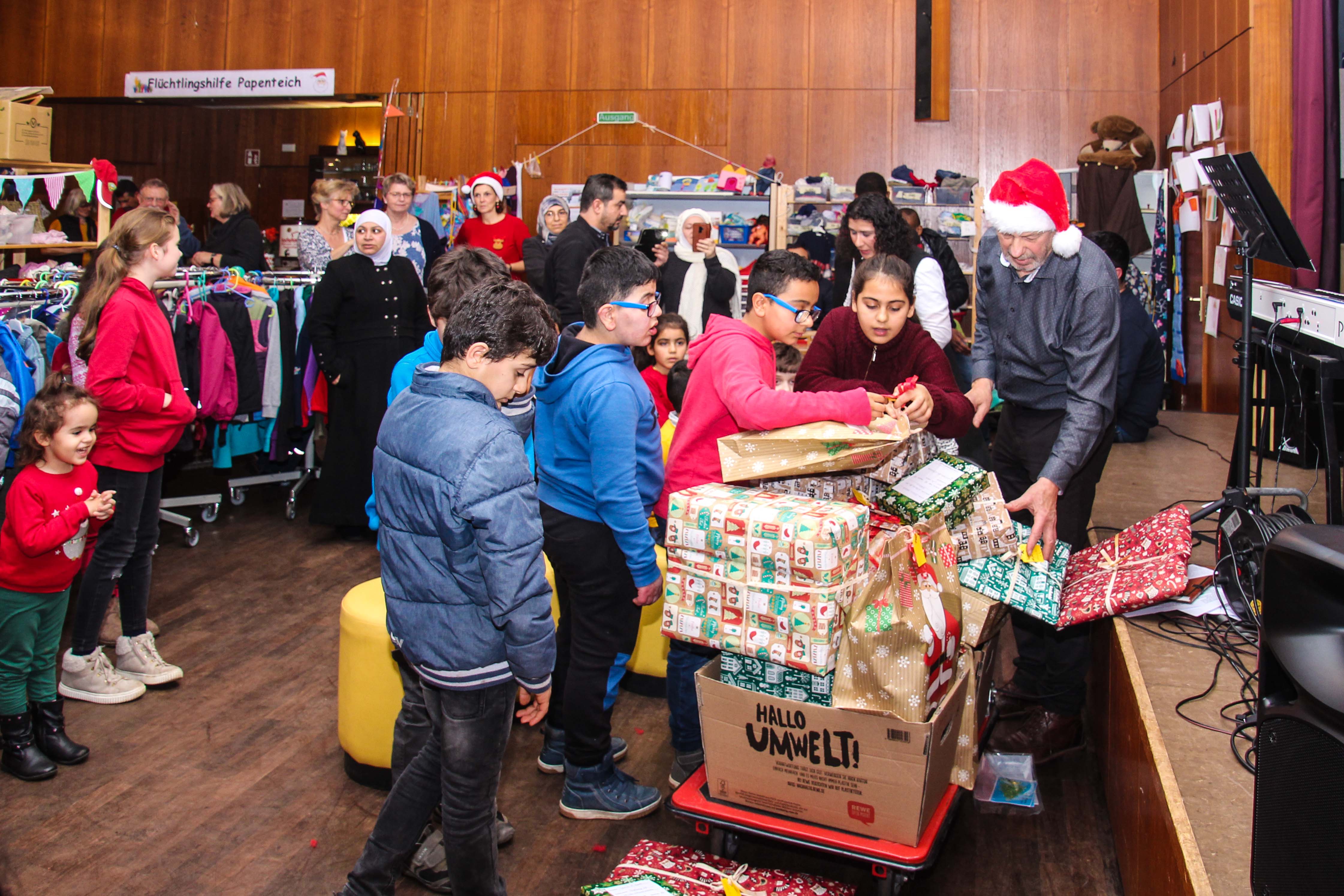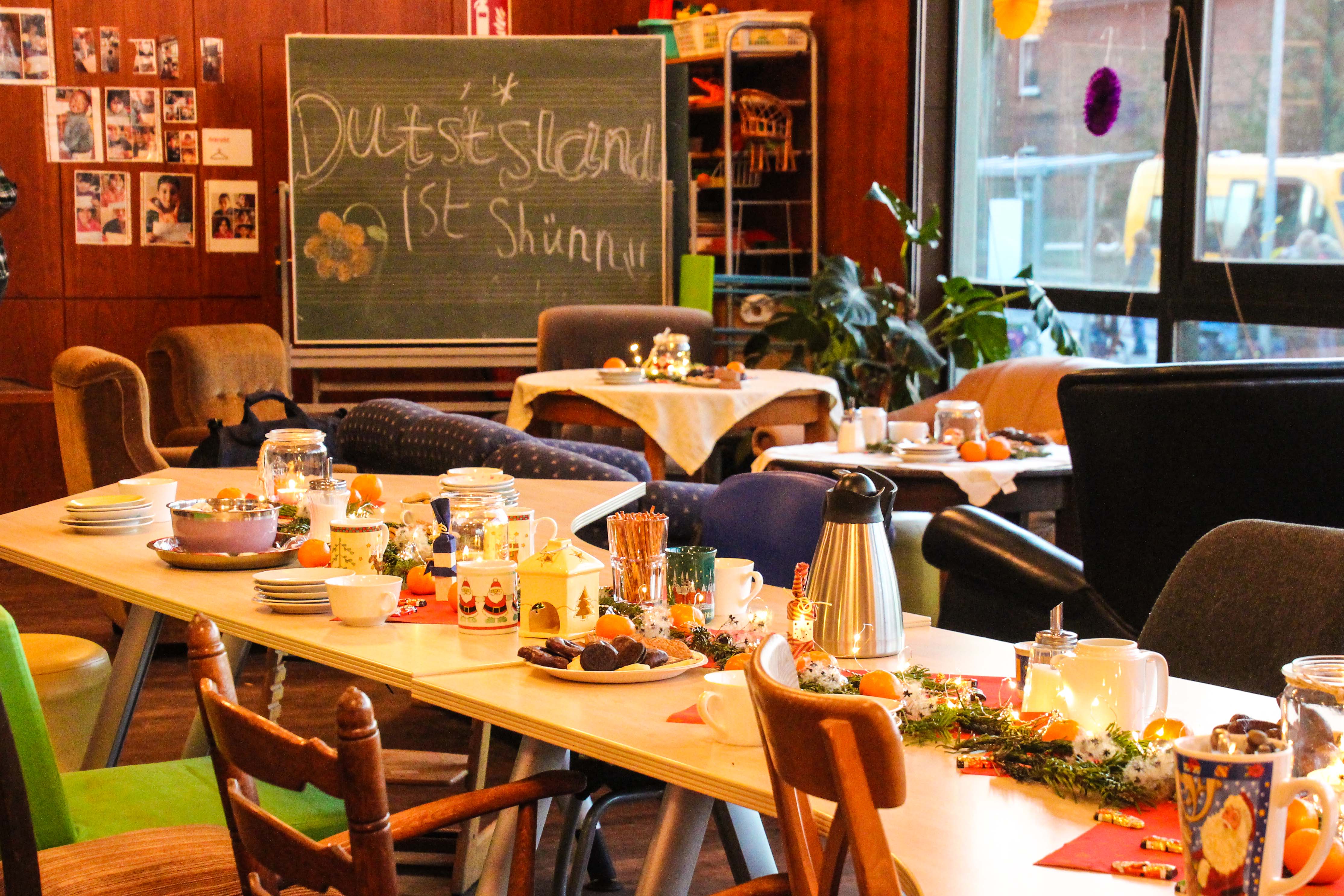 Die Flüchtlingshilfe hatte zur Weihnachtsfeier eingeladen, zur üblichen Öffnungszeit des Magazins, aber ohne Deutschunterricht, Formularhilfe und ohne Spendenausgabe. Die rund 100 von uns betreuten Menschen aus Syrien, Sudan und weiteren Ländern waren fast alle gekommen, um im weihnachtlich geschmückten Magazin dabei zu sein. Auch aus Gifhorn und Schönewörde kamen einige Familien, die mittlerweile regelmäßig dabei sind. Neben Kaffee, Tee und allerlei Gebäck gab es passend zum Anlass einen leckeren Punsch, natürlich alkoholfrei.